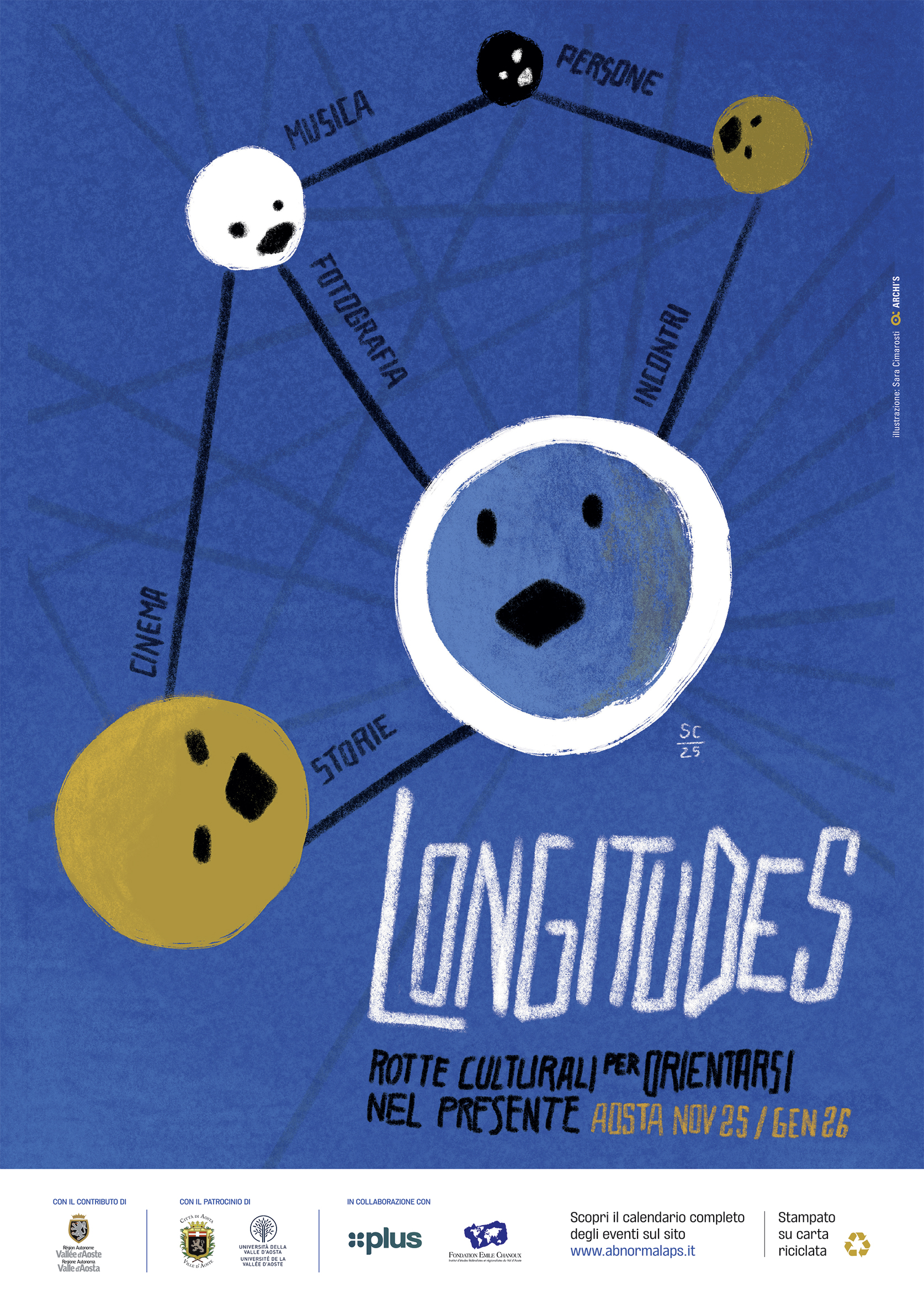La rassegna è organizzata da abnormal APS con il contributo della Regione autonoma Valle d’Aosta, con il patrocinio del Comune di Aosta e dell’Università della Valle d’Aosta e realizzato in collaborazione con Plus Aosta e Fondation Émile Chanoux.